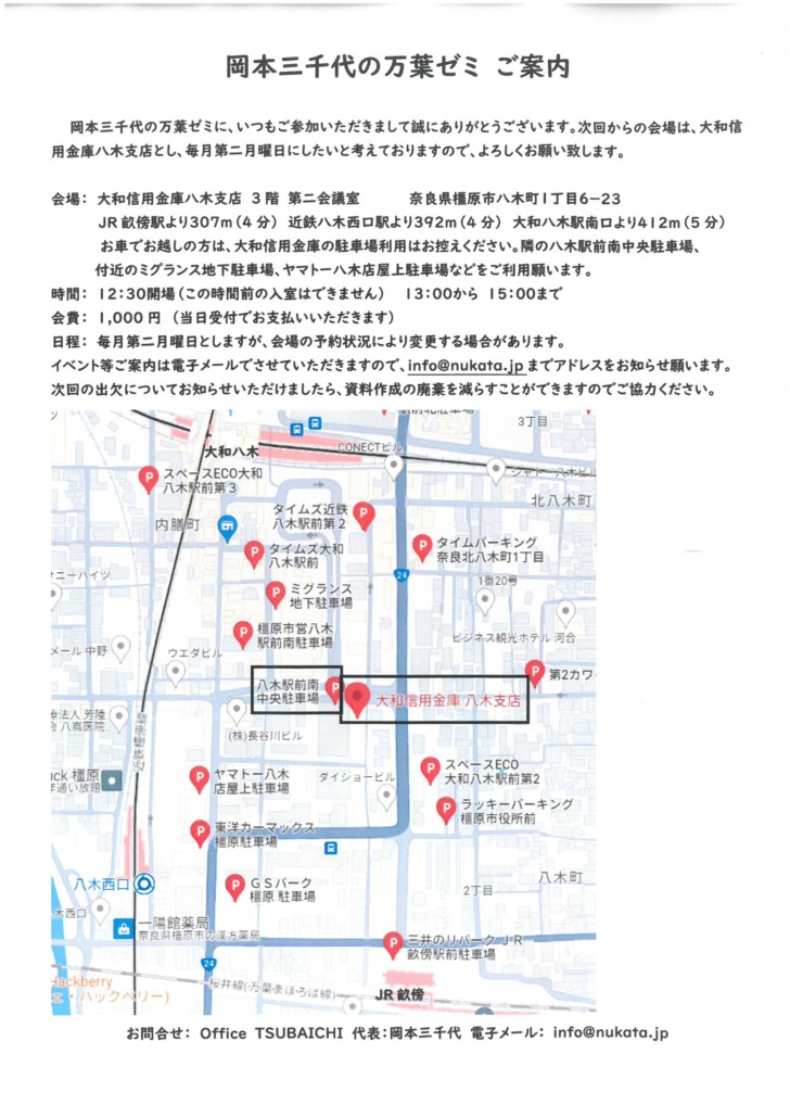 お問合せ: Office TSUBAICHI 代表:岡本三千代 電子メール: info@nukata.jp