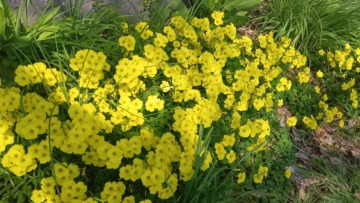 自宅までの帰り道…、ご近所の植栽も個性的だ。玄関のアプローチはサクラソウで満開のお家。