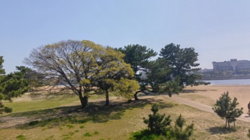 松の木や大木はどっしりと、香櫨園や西宮の浜辺の背景としてやはり絵になります・・・。
