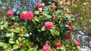 おー、公園のそばにこんなにうつくしい「椿」見いつけた! なんて素敵💛